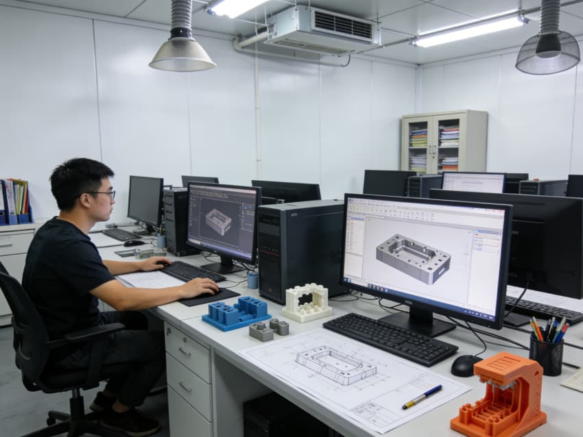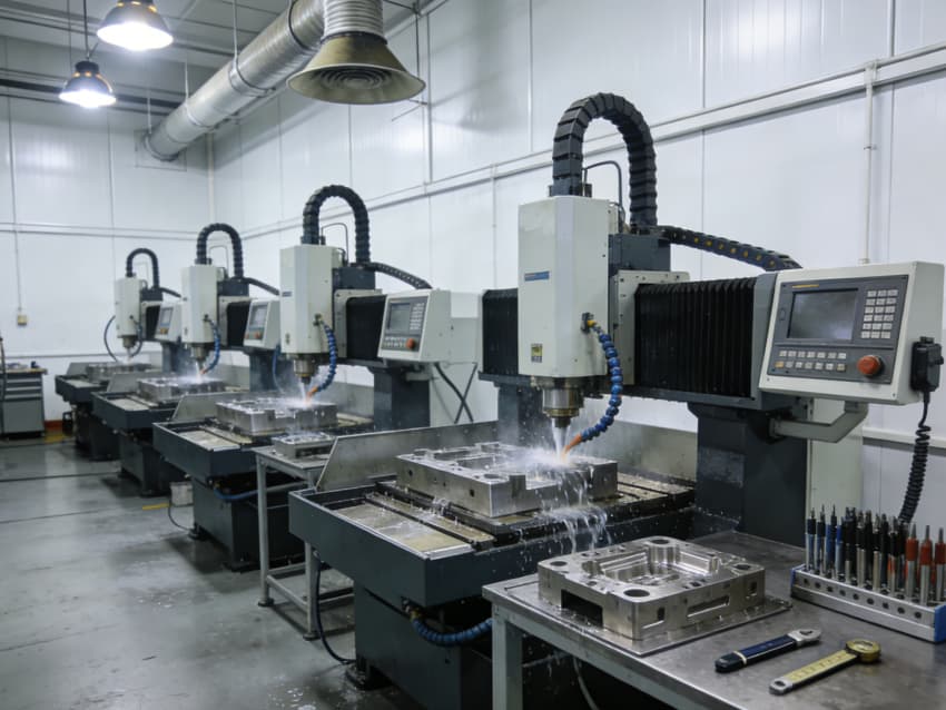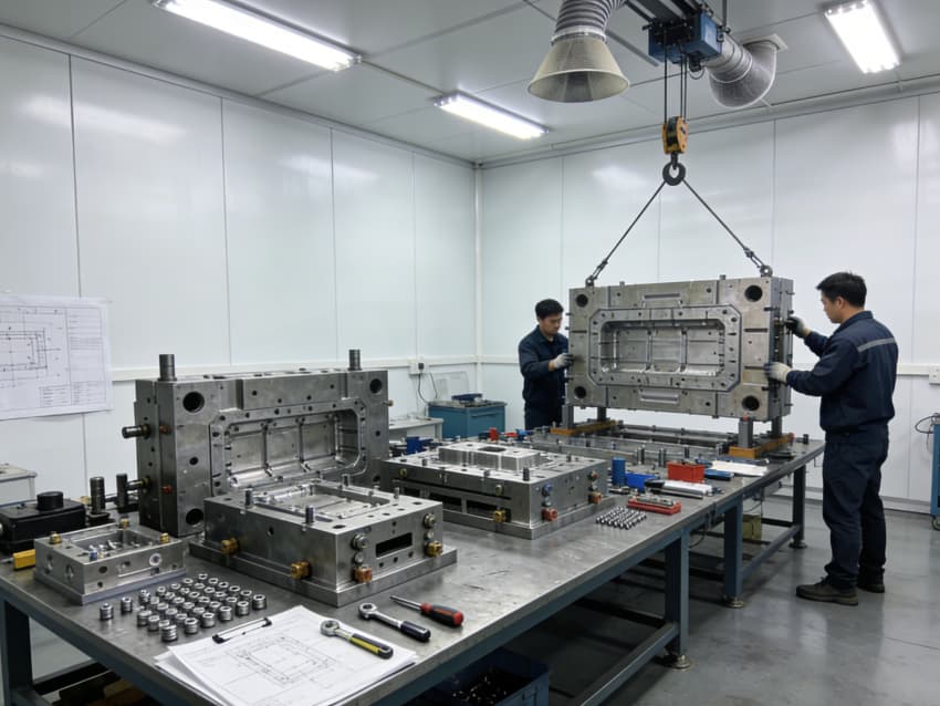 白色墻面采用工業(yè)級潔凈涂層,無縫拼接搭配圓弧陰陽角設計,杜絕積塵死角,減少粉塵對模具精度的影響。車間劃分加工區(qū)、檢測區(qū)、調(diào)試區(qū)等功能區(qū)域,布局科學合理,加工區(qū)增設阻尼減震墊層降低設備振動干擾,檢測區(qū)預留精密儀器安裝位與恒溫調(diào)控接口,各區(qū)域均配備標準化管線預埋與設備固定點位,全方位保障模具制造的精準性與穩(wěn)定性。