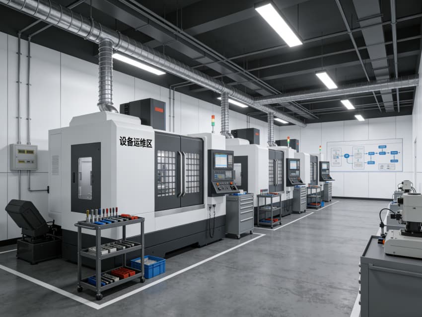配套的物料倉(cāng)儲(chǔ)區(qū)采用重型貨架規(guī)范存放各類工裝夾具與半成品,實(shí)現(xiàn)物料的快速調(diào)取與流轉(zhuǎn);“設(shè)備運(yùn)維區(qū)” 配備專業(yè)維保團(tuán)隊(duì)與工具車,定期對(duì) CNC 設(shè)備進(jìn)行校準(zhǔn)與養(yǎng)護(hù),確保設(shè)備長(zhǎng)期處于高精度運(yùn)行狀態(tài)。