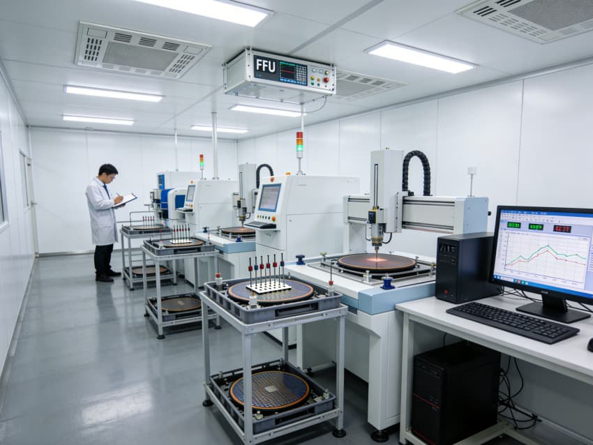 集成電路制造廠房內部采用灰色地面與白色墻壁的簡約科技風格,嚴格契合半導體行業Class 6級潔凈標準,精準匹配芯片制造對微塵、靜電、溫濕度的極致嚴苛要求。灰色地面選用防靜電高耐磨環氧自流平材質,經基層固化、激光找平、防靜電涂層等多道精密工序,表面平整度誤差≤0.5mm/m,防靜電性能穩定在10?-10?Ω,可耐受高頻次清潔消殺與精密設備碾壓,同時具備強抗化學腐蝕特性,適配光刻膠、蝕刻液等特種物料防護。