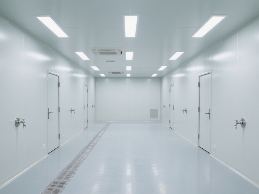 效果圖從不同視角展現(xiàn)空間優(yōu)勢(shì):正面視角呈現(xiàn)開闊的通透格局,無(wú)設(shè)備干擾更顯規(guī)整;角落特寫聚焦圓弧墻角與無(wú)縫拼接工藝,規(guī)避積塵死角;側(cè)視角度凸顯層流送風(fēng)系統(tǒng)與高效過(guò)濾裝置,直觀傳遞潔凈技術(shù)核心;局部細(xì)節(jié)圖則清晰展示地面防滑紋理、墻面抗污涂層等實(shí)用設(shè)計(jì)。?